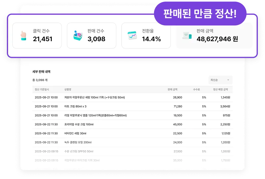 공유한 링크를 통해 판매가 발생하면 수수료를 정산받아요